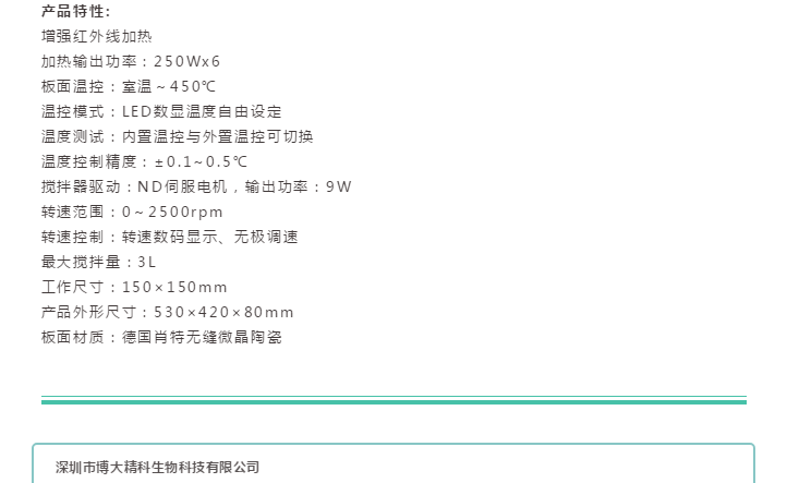 深圳市博大精科生物科技有限公司是一家高新科技公司,致力于先進材料的研發(fā)和應用,公司自有產品知識產權,開發(fā)項目包括納米發(fā)熱新材料,廣泛應用于工業(yè),醫(yī)療,科研,實驗室等領域;